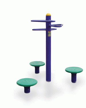 鍛煉方法:手握立柱把手,站在轉(zhuǎn)體盤上,向左右反復做轉(zhuǎn)體運動。