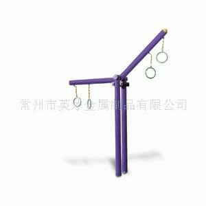 鍛煉方法:兩人根據(jù)自身情況選擇力臂不同的圓環(huán),利用上肢或自重將對方脫離地面,交替反復進行。